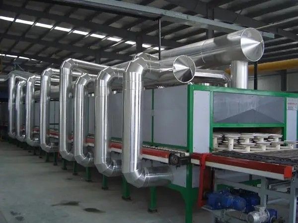 कम तापमान वाली रोलर ओवन; रंग के लिए लगभग 800°C, ईंटों के लिए लगभग 1000°C;